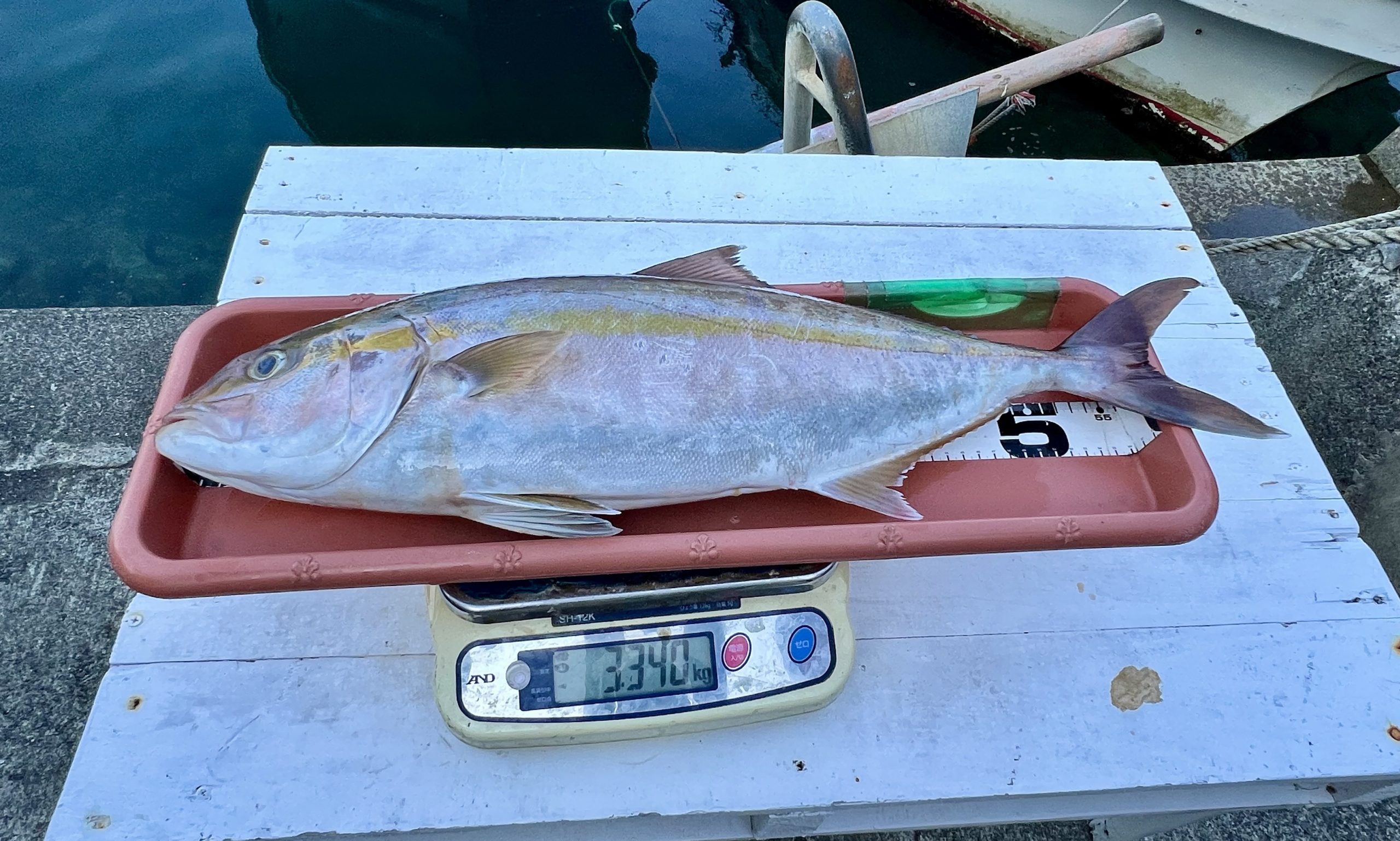 カンパチ3キロを1本。かんぱち(ショゴ1キロ弱サイズ)3枚?、オオモンハタ、アカハタ数匹、イナダワカシ。