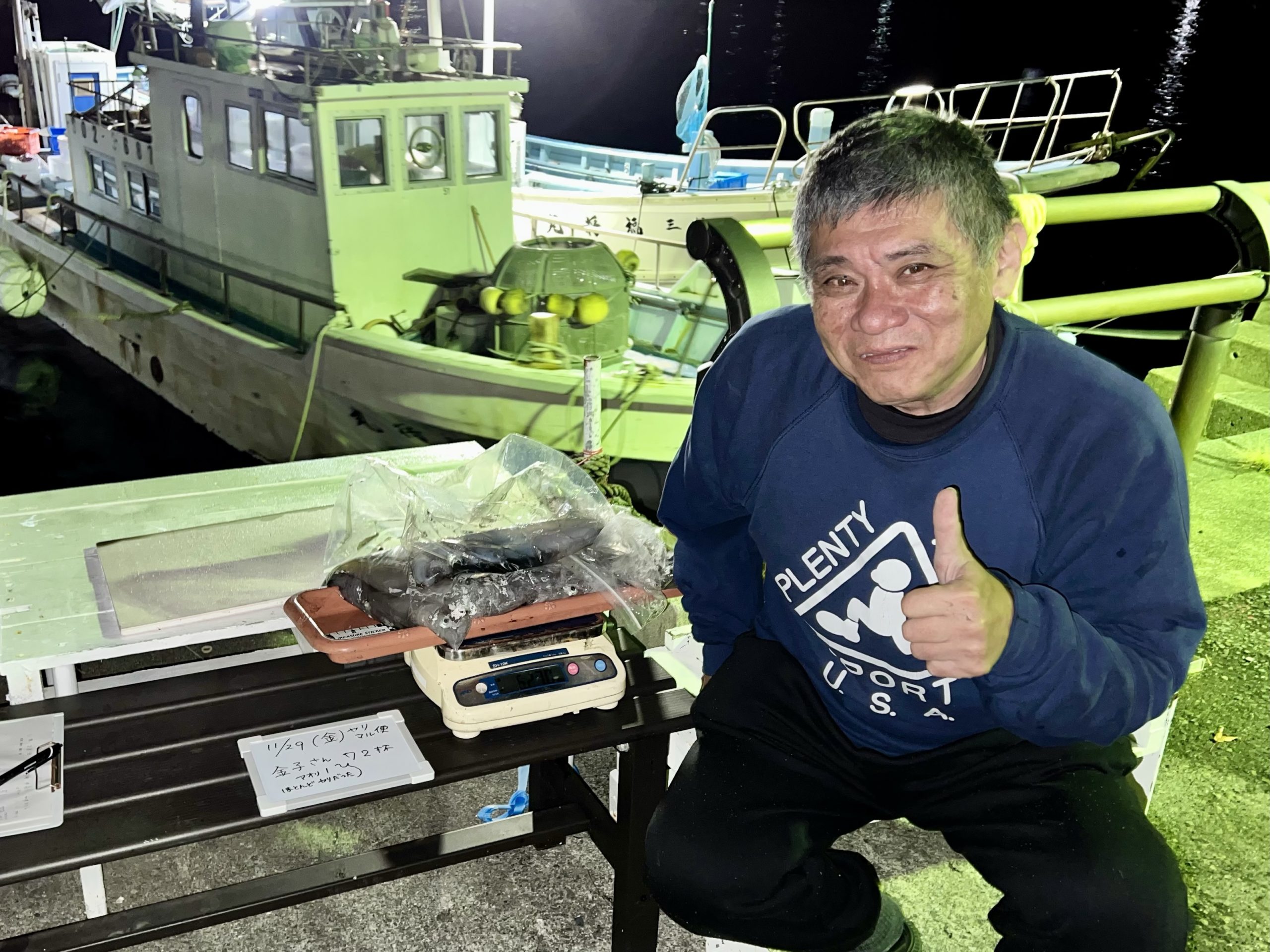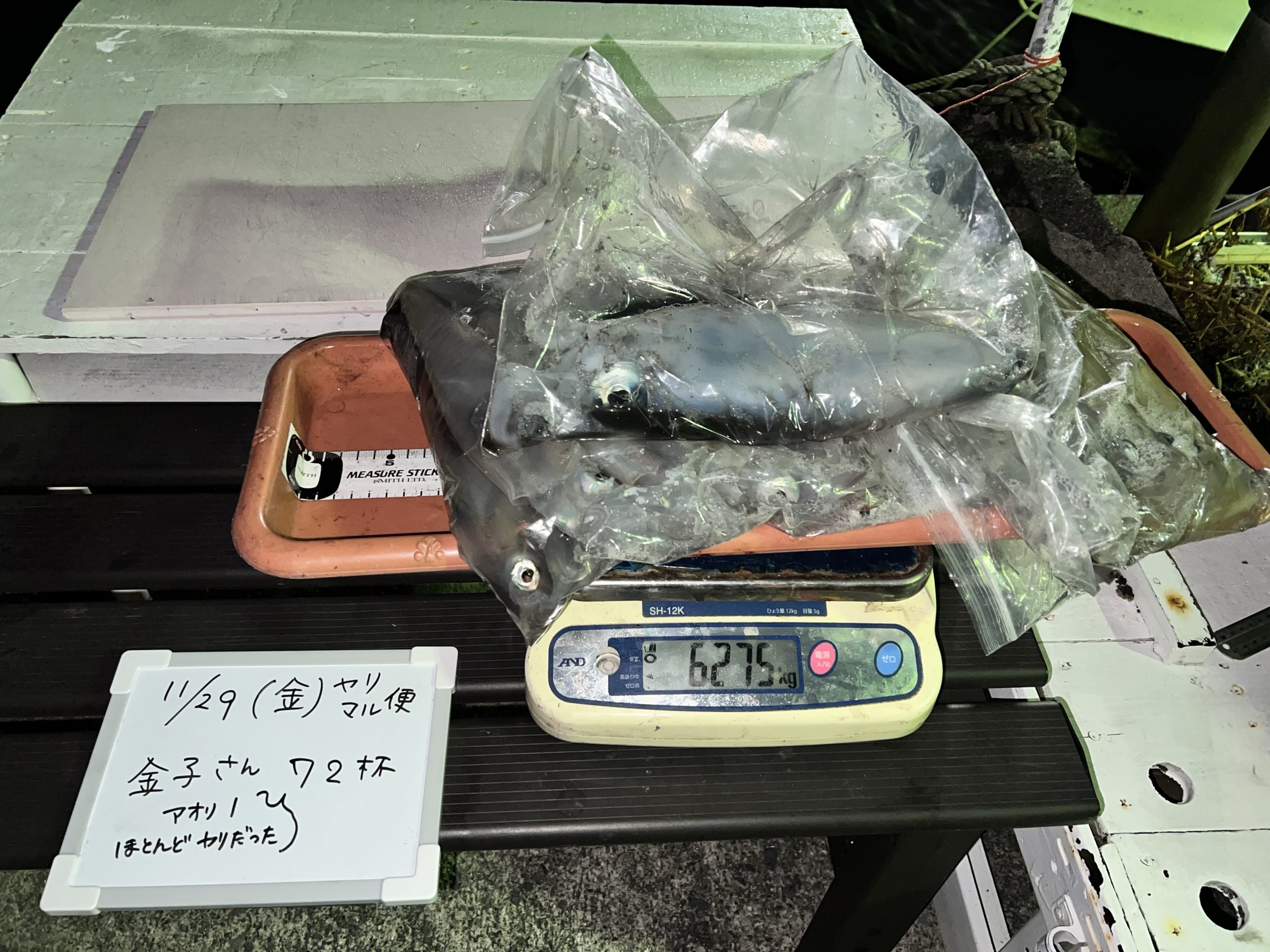 昨日のイカの数は、トップの方が72杯(あおり1、マル少々)