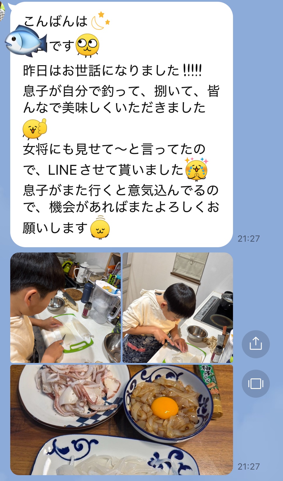 釣ったイカをすぐ食べてみたい方は声かけてくださいね〜
