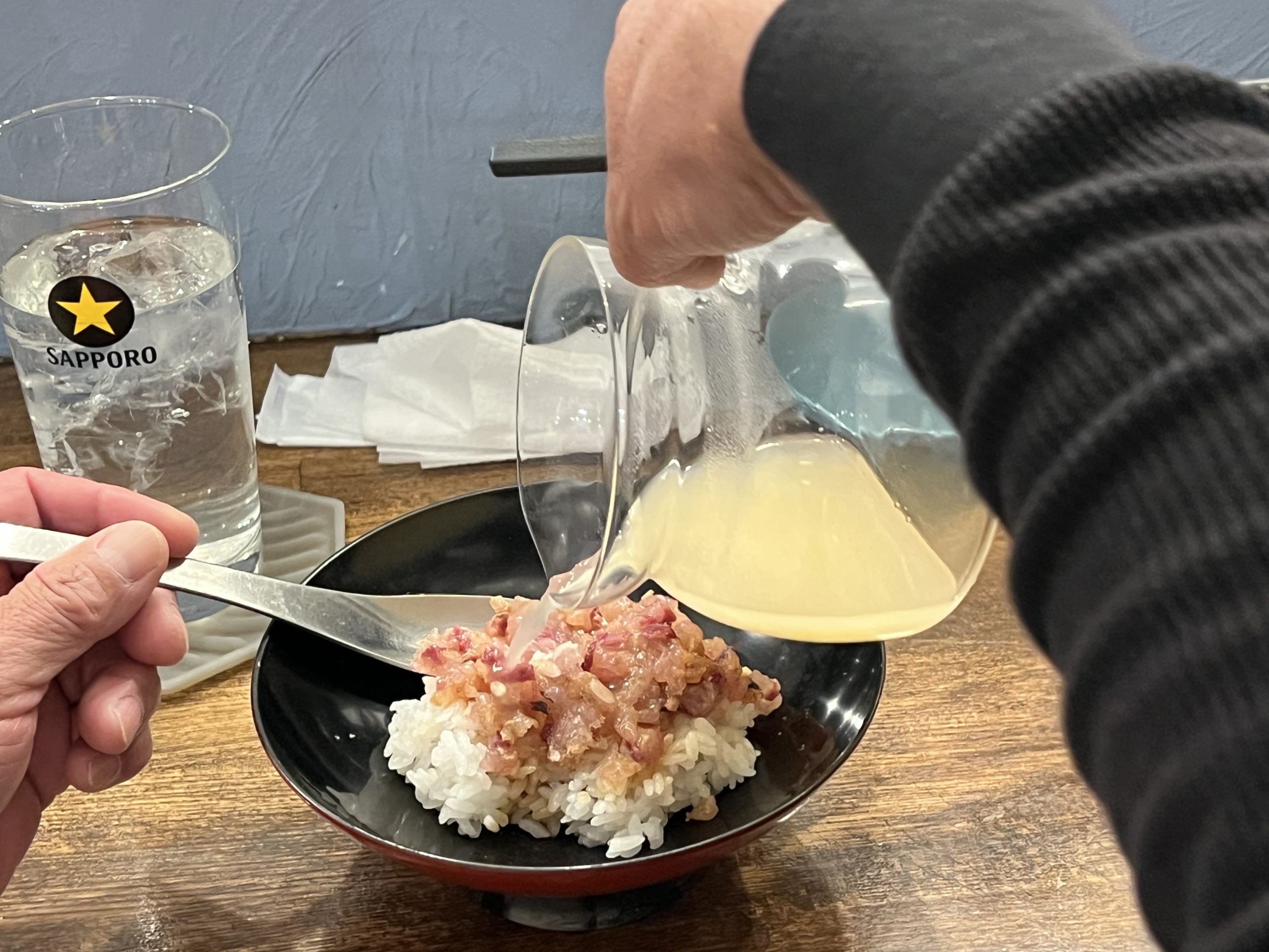 ぶりのすき身に、温かい出汁をかけて〜みたいなお茶漬け風なメニューだったと思います、ものすごくうろ覚えで申し訳ない。