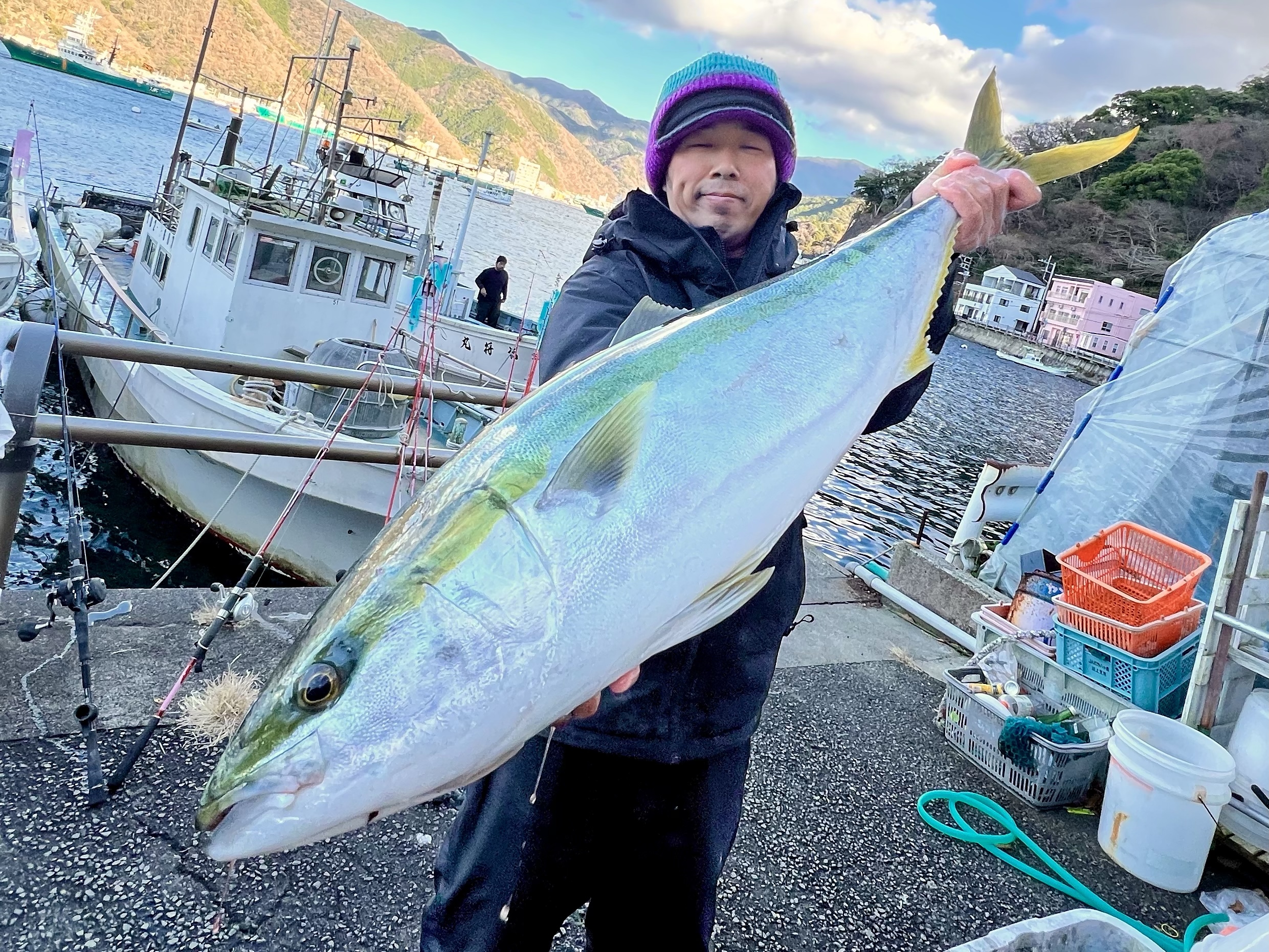 年始1発目は、せりさんが港の中で泳がせて釣ったブリから始まりましたね。